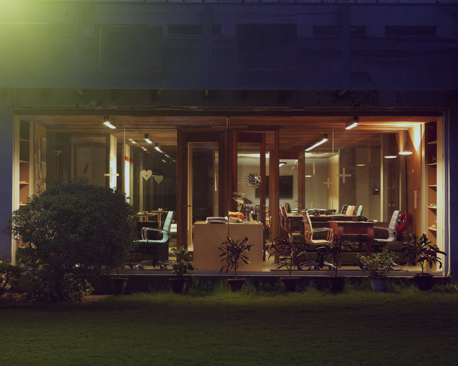 This is an open-office built for a well-established advertising company. The idea of collapsing public and private space lies at the heart of this project. This office is designed to dialogue with the outside, and flip the gaze to interrogate who constitutes “the public.” It is also an office that is built to reflect the employees who work in it, rather than the clients it services; the Madras-checked chair fabric, which is linked to a personal story, is an example of this. Locally sourced materials were used to add a sense of comfort, character, and simplicity to the space.