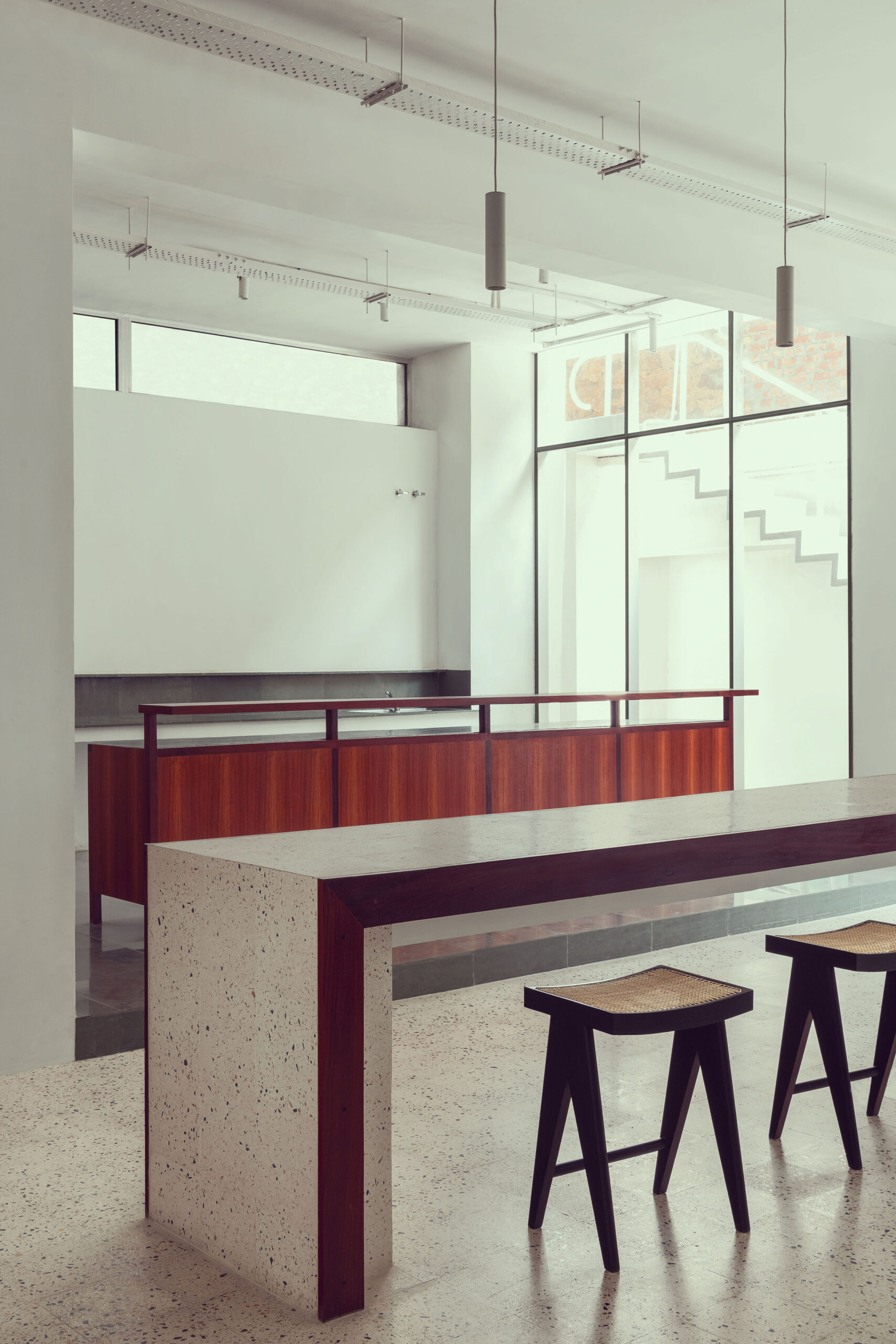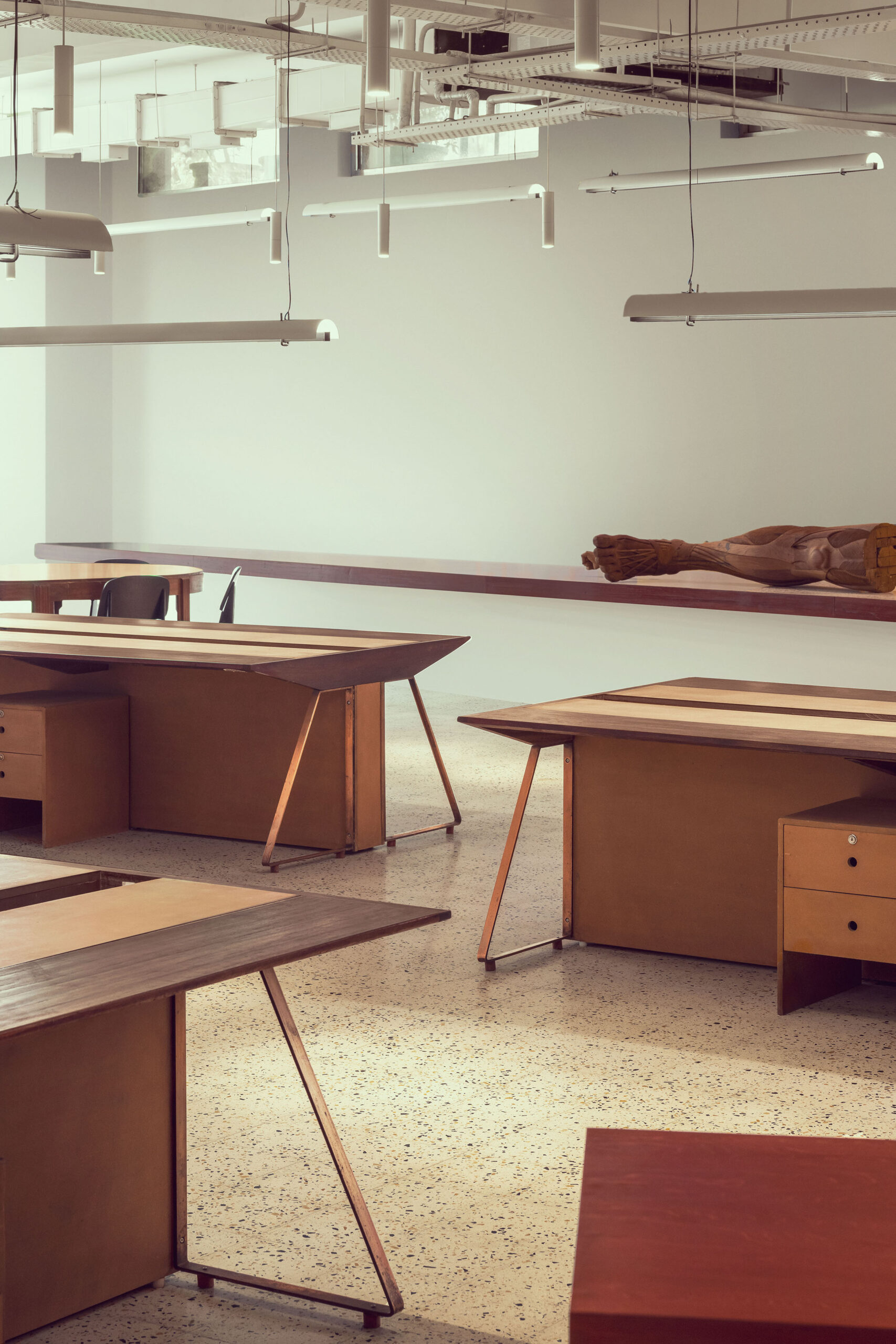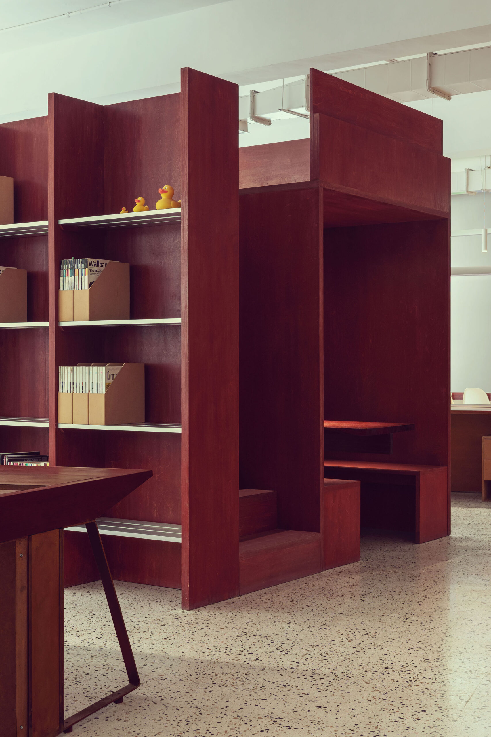 Here, the Studio was commissioned to create an office for a client for the third time. The relationship between continuity and newness was the most important consideration. In creating this open office, the Studio was keen on showing continuity with the “old” space, where collapsing the divide between public and private spaces had been an important trope. From a design perspective, this was a rare opportunity to improve upon an original idea, and introduce “newness” with consciousness: many of the materials that belonged to the original office were seamlessly carried through to the new project, and at the same time, certain spaces, such as the office library, were improved upon. An element of fun was also carried through to the new design, especially evident in the use of artwork.